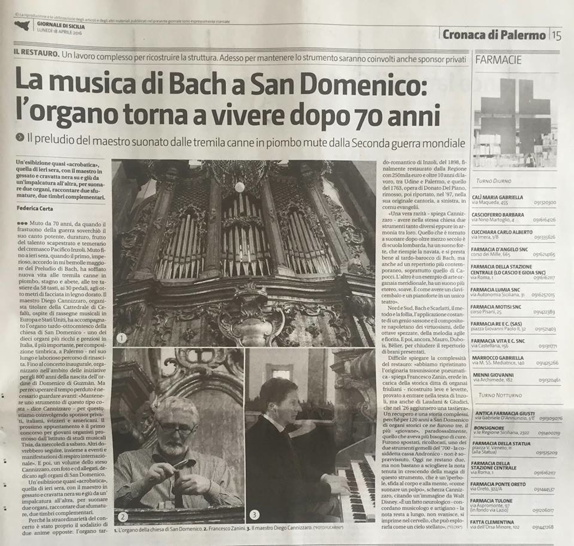 CONCERTO DI INAUGURAZIONE DELL’ORGANO DOPO IL RESTAURO